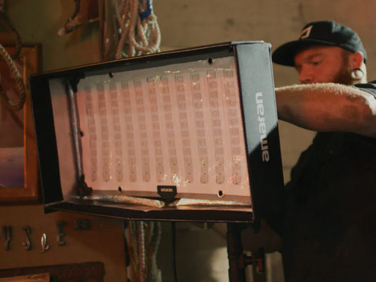 To add a beautifully controlled soft light to your scene, attach the included softbox, one of two strengths of diffusion cloths, or the included light control grid using the integrated hook-and-loop fabric to further finesse your lighting design. The F21x can also be combined with the amaran F21 Lantern with light control skirt to extend the fixture as a volumetric lantern or pancake light.