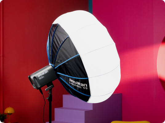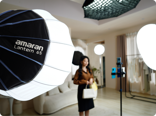 The amaran Lanterns are 65cm (2ft) / 90cm (3ft) omnidirectional Bowens Mount modifiers built for filling spaces with soft, ambient lighting.