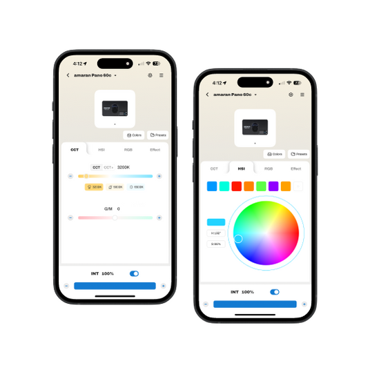 Control your lights wirelessly with the amaran app – perfect for quick adjustments during shoots or managing multi-light setups for live events. Whether your amaran Pano 60c is mounted out of reach or you’re working with a full studio setup, the amaran app lets you fine-tune settings with a single click – all from your phone or desktop.