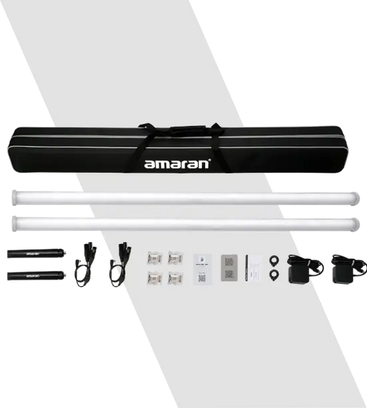 For filmmakers looking for more lights for in-camera practicals, symmetrical lighting for one or multiple subjects, and twice the output of a standalone fixture, the PT4c 2-Light Production Kit unlocks even more possibilities to enhance your frame. The production-ready kit expands the full-sized pixel tube's capabilities with 2x the available light, and is fully equipped with additional accessories for all your creative needs.