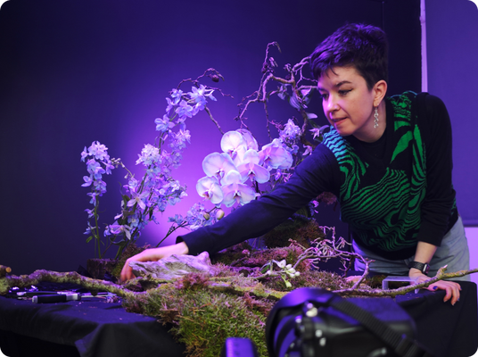 Stormy Pyeatte is a photographer & video artist with a passion for lighting, projection mapping and floral design. While her commercial work focuses on creating product photography and visuals for brands, her personal Instagram is a space for creative exploration-where she shares personal projects, lighting demos, and experiments with new techniques. Stormy enjoys creating using practical effects, blending the tactile with the technological.