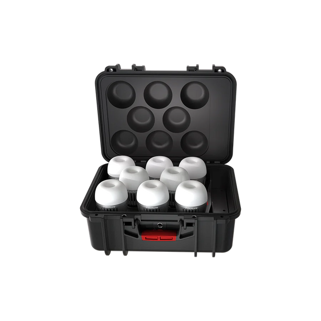 The 8-Light Charging Kit is made for indie-filmmakers, owner-operators, and rental houses, featuring a durable hard shell case with the ability to simultaneously store, protect, and charge up to eight B7c bulbs. Designed for safety and ease-of-use, the 8-Light Charge Case features a push-pull design and socket covers to protect you from unintended shocks.